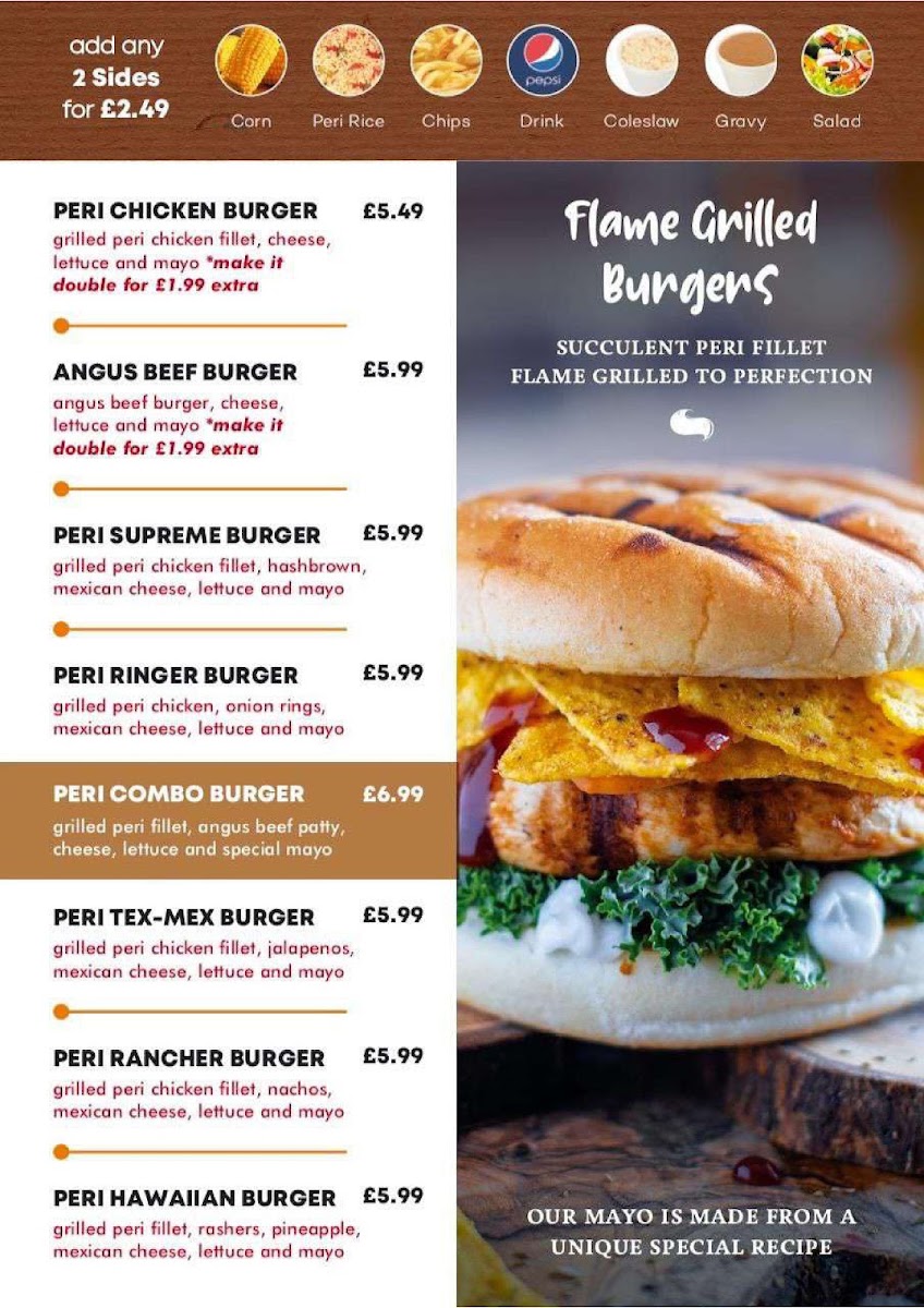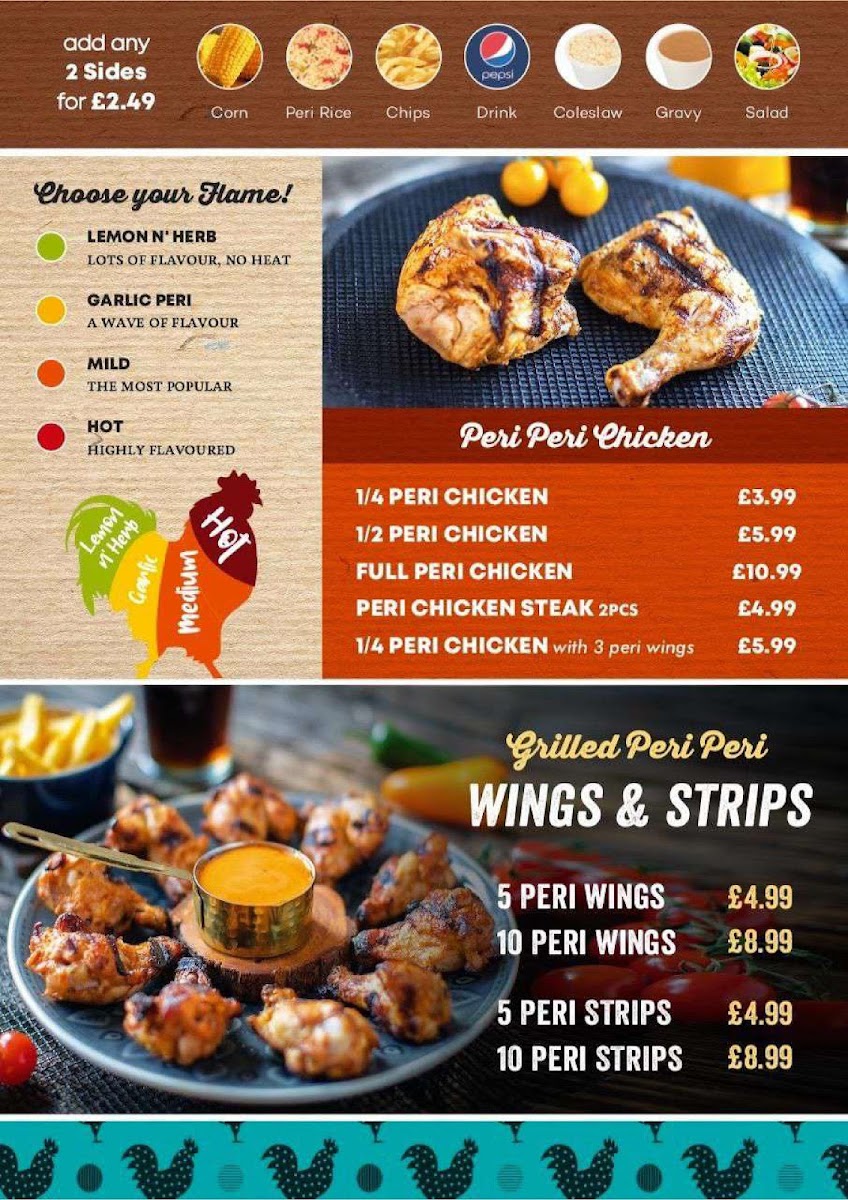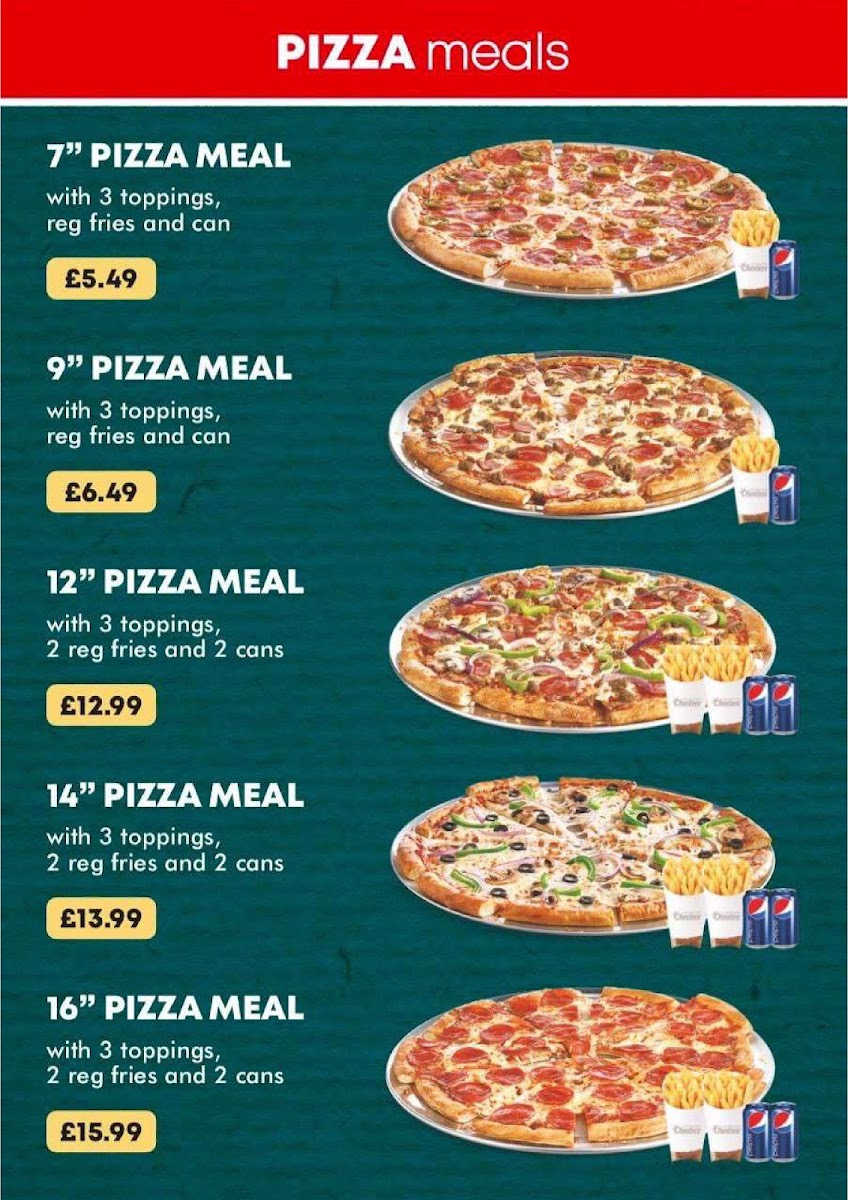 The menu also offers a diverse variety of exciting meals, including flavorsome options like Raging Cajun, Sweet N' Sour, and Mexican Heatwave, ensuring there’s something for everyone. Guests rave about the Spicy Wings (£2.99) and Popcorn Chicken (£3.99), which are perfect for a quick snack or as appetizers to kick off your meal. Don't forget to enhance your dining experience with the garlic bread options, including the classic Garlic Bread for £4.49 or the gooey Garlic Bread with Cheese for £7.49, ideal for dipping into your favorite sauces!