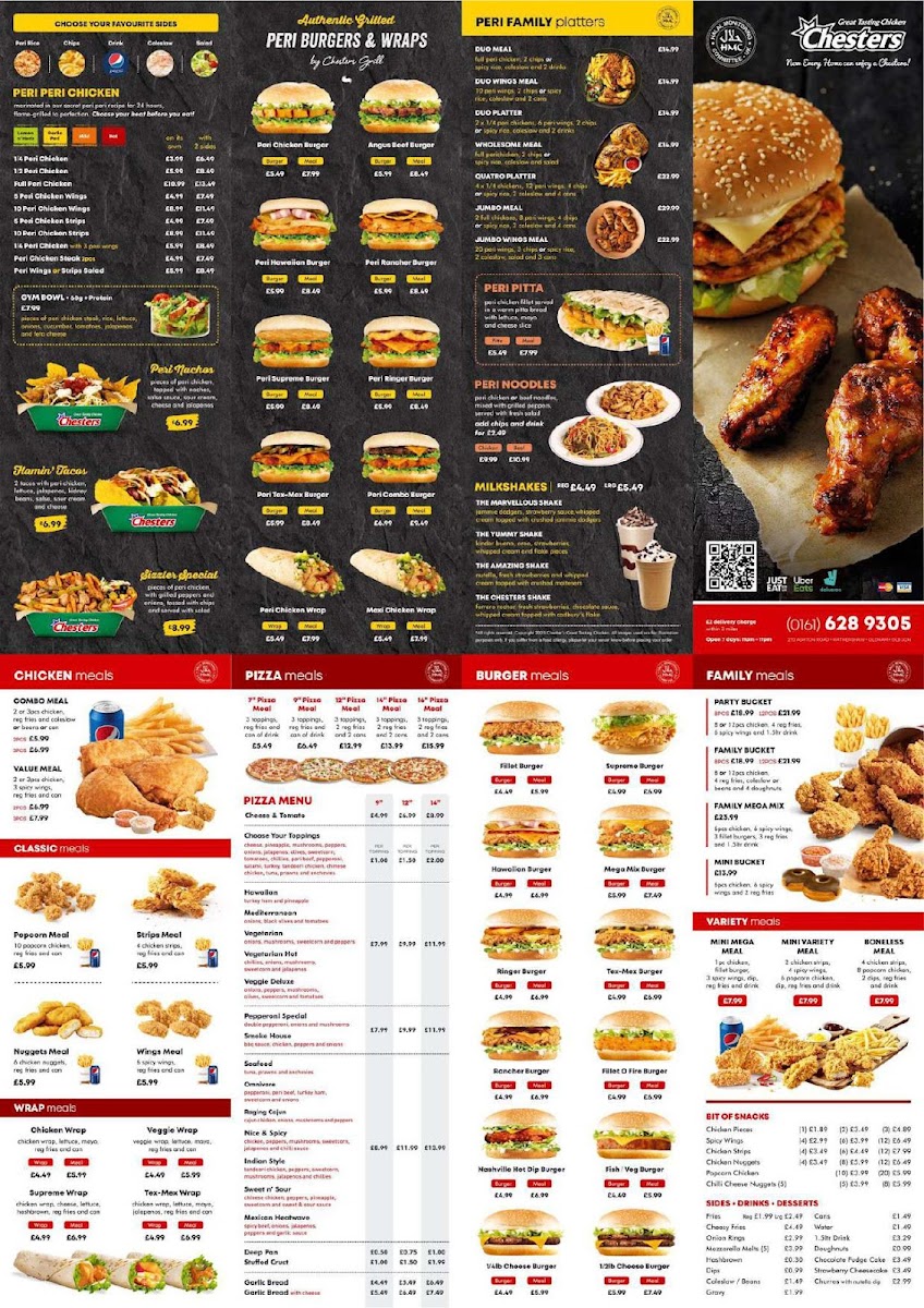 In conclusion, whether you're ordering a quick bite or feeding a crowd, Chester Chicken serves up delicious, high-quality fare at reasonable prices. It’s not just about the food; it’s about enjoying a memorable experience with friends and family in a warm and inviting atmosphere. Stop by or call them at +44 161 628 9305 to place an order and taste the joy of Chester Chicken today.